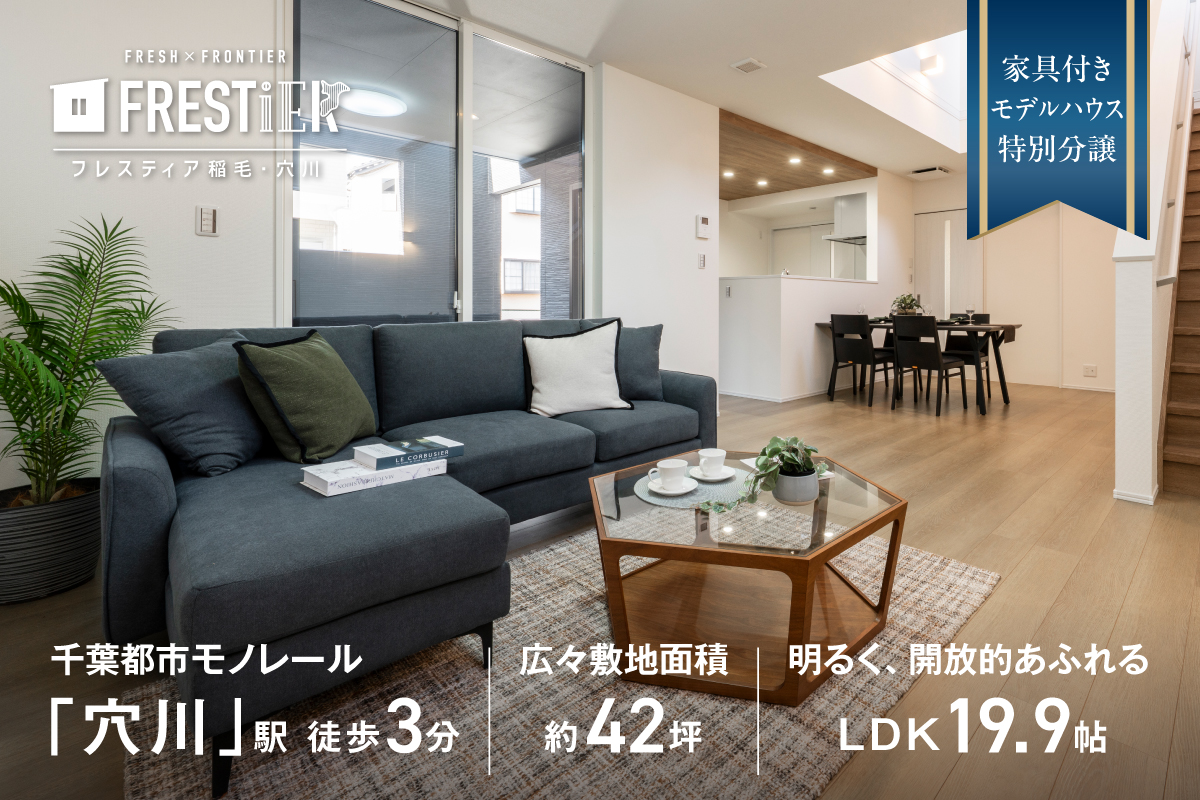 【ご好評につき再延長!!】家具付きモデルハウス特別分譲キャンペーン こだわりのセレクト家具付きモデルハウス 特別分譲キャンペーン 家具付きモデルハウスを販売いたします。 期間限定の分譲となりますので、家具付き物件をチェックして、インテリアや間取りなどを現地でご確認ください。 対象モデルハウス | キャンペーンについて | ローン相談はこちら 対象モデルハウス 画像をクリックすると物件の詳細をご覧いただけます。 ※無料会員登録が必要な場合もあります。 千葉市稲毛区モデルハウス 穴川駅 徒歩3分 間取り 3LDK +ホール収納×2+階段下収納+吹抜け +ロジア+WIC +インナーバルコニー 木更津市羽鳥野モデルハウス 木更津駅 車15分 間取り 4LDK +SIC+パントリー+吹抜け +リビング収納+ホール収納 +WIC+バルコニー 柏市増尾モデルハウス 増尾駅 徒歩10分 間取り 3LDK +ホール収納+パントリー+SIC +リネン庫+ヌック+ファミリークローゼット +インナーバルコニー 柏市増尾モデルハウス 増尾駅 徒歩10分 間取り 3LDK +小上がり+パントリー+リネン庫 +ホール収納+WIC +インナーバルコニー 印西市草深モデルハウス 印西牧の原駅 徒歩18~19分 間取り 4LDK +SIC+パントリー+ウッドデッキ +リネン庫+2WIC +吹抜+バルコニー 船橋市田喜野井モデルハウス 薬園台駅 徒歩8分 間取り 3LDK +パントリー+リネン庫 +吹抜け+バルコニー 船橋市松が丘モデルハウス 船橋日大前駅 徒歩15分 間取り 4LDK +ホール収納+WIC +ファミリークローゼット+バルコニー 八千代市八千代台モデルハウス 京成大和田駅 徒歩12分 間取り 3LDK +タタミスペース+パントリー +リネン庫+WIC+バルコニー 鎌ケ谷市東中沢モデルハウス 北初富駅 徒歩10分 間取り 3LDK +ホール収納+WIC +パントリー+バルコニー 鎌ケ谷市東中沢モデルハウス 北初富駅 徒歩10分 間取り 3LDK +小上がり+リビング収納+カウンター +WIC+吹抜け+ロフト+バルコニー \ モデルハウス詳細はこちら / キャンペーンについて セレクト家具付き住宅はこんな方におすすめです。 ■内覧時、生活シーンをイメージしたい。 ■家具など住宅購入にかかる初期費用を抑えたい。 ■大きな荷物を運ぶ手間を省いて引越しを楽にしたい。 ■プロがコーディネートしたおしゃれな家具を手に入れたい。 物件によって、主寝室や子ども部屋にも家具を設えた住まいがあります。 期間限定のおトクなキャンペーンをお見逃しなく! \ 対象のモデルハウスはこちら / <キャンペーンの注意事> ・キャンペーンの適応は、2026/3/1(日)~2026/3/8(日)までのご契約に限ります。 ・オプションでカーテンや照明、お引越のご相談も承ります。 ・家具は現状有姿、保証なしでのお引き渡しとなります。予めご了承ください。 同時開催!ローン相談会 本キャンペーンと合わせて、住宅ローンの相談会も同時開催いたします。 お気軽にお問い合わせくださいませ。 新型コロナウィルス感染拡大に伴う対応について 当社では、お客様の安全を第一に考え、そして従業員が安心して働けるよう、以下の対策を講じております。 ・お客様並びに従業員の健康と安全を考慮し、スタッフがマスクを着用させていただいております。 表情が見えづらくご不快に感じられることもあるかと存じますが、ご理解を賜りますようお願い申し上げます。 ・ショールーム受付、各支店、お化粧室にアルコール消毒を設置させていただいております。 お客様がご来場される際やお化粧室をご利用後など、ご自由にご利用ください。 また、ご見学いただける各分譲地でのモデルハウスでも同様の対応をさせていただいております。 ご見学のご予約をいただいている際には、当日の体調をご確認の上、お越しいただきます様お願いいたします。 今後もお客様が安心してご利用いただける環境づくりを行ってまいります。 どうぞご安心してご来場くださいませ。 また、お客様にご不便をお掛けすることもございますが、何卒ご理解いただきますようお願い申し上げます。